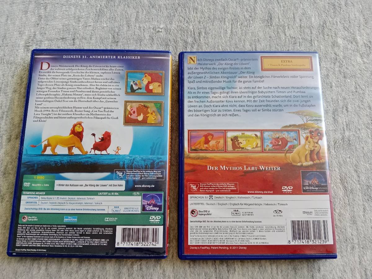 2 Teiliges Disney Dvd Set, König der Löwen Teil 1 +2, zusammen FIX 10€